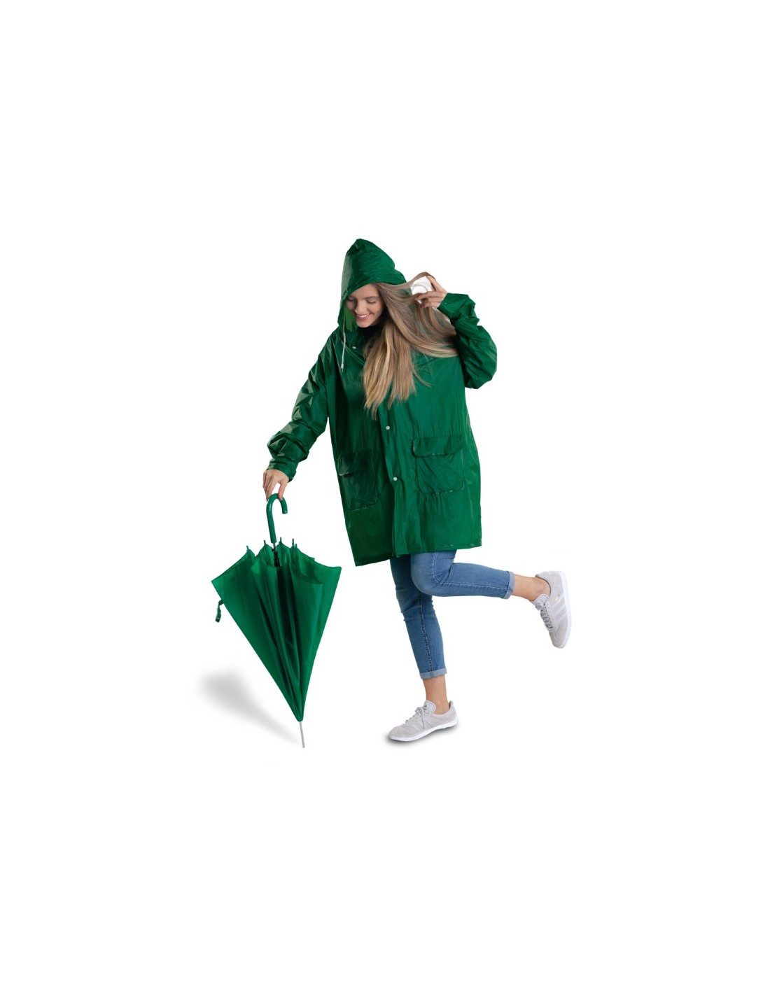 Giacca impermeabile in PVC- Con cappuccio -Tasche e chiusura con bottoni automatici- Confezionata in bustina richiudibile - Taglia Unica - Colori: Rosso, Blu Navy, Verde