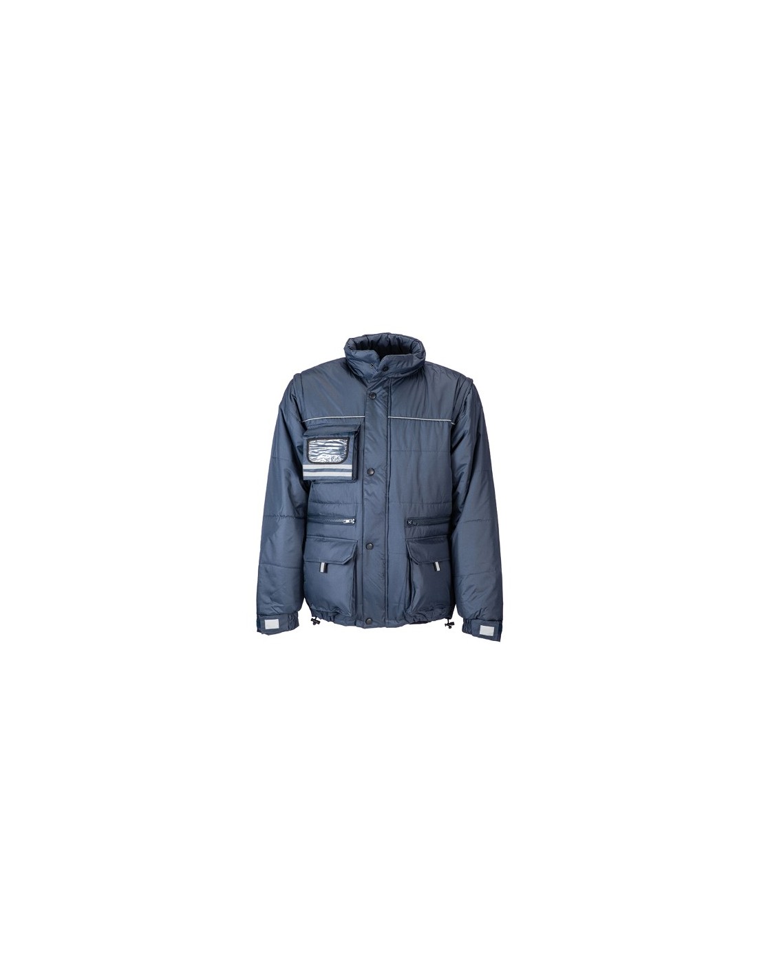 Giubbotto imbottito in poliestere pongee - Con maniche staccabili, tasca porta tessera di riconoscimento e profili catarifrangenti - Colore Blu - Taglie: S - M - L - XL - XXL
