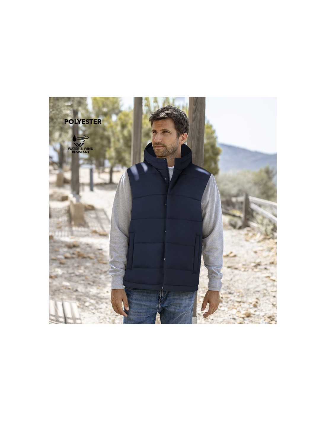 Gilet con Cappuccio 100% poliestere - Con cappuccio in caldo e morbido materiale 100% poliestere. In materiale leggero, resistente al vento e all'acqua, elegante costruzione orizzontale e design trapuntato, con cappuccio fisso integrato, doppia zip frontale e chiusura a gancio, tasche laterali con linguette in tinta e coulisse regolabile sull'orlo - Colore: Nero, Blu - Taglie: S - M - L - XL - XXL