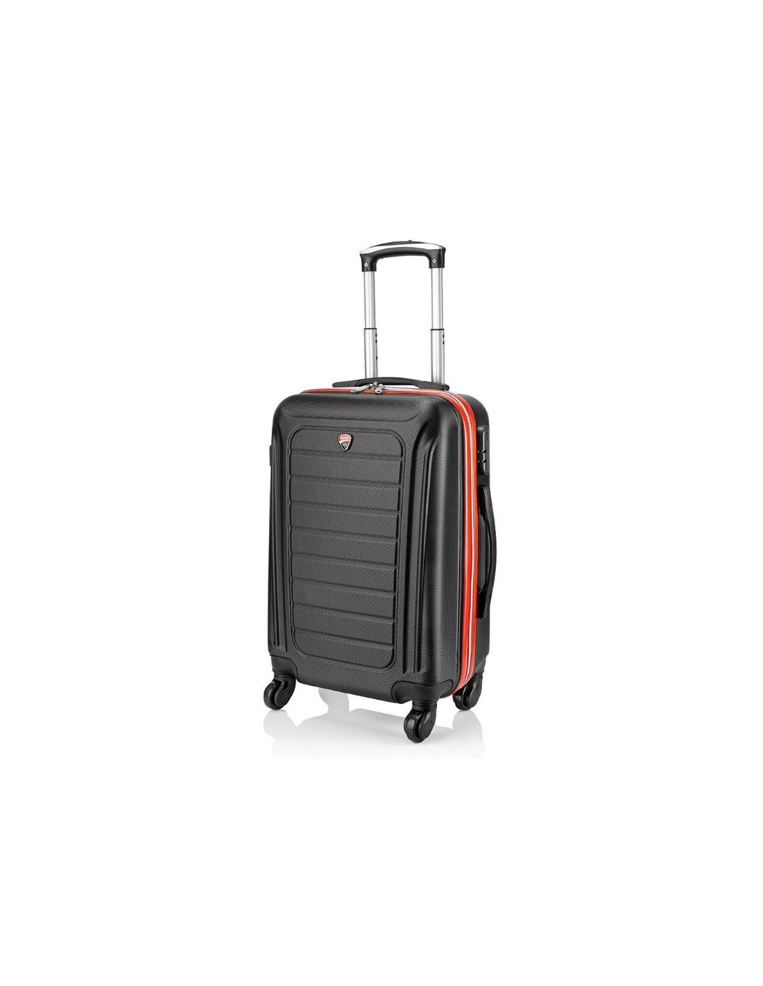Trolley 24 " Ducati in ABS con 4 ruote - Carrello telescopico con pulsante per la regolazione dell'altezza - Interno a due scomparti organizzato, lucchetto a combinazione laterale - Manici con impugnatura in silicone - Colore: Nero - F.to cm 64x24,5x40