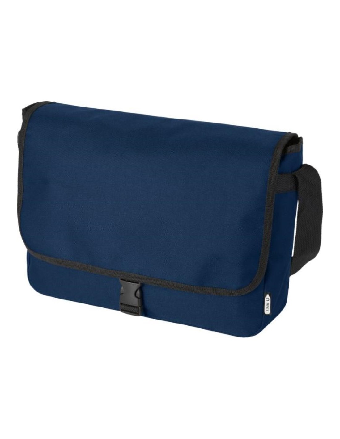 Cartella portadocumenti in poliestere riciclato 600 D - Con tracolla regolabile, scomparto principale chiudibile con patella e fibbia - Colore: Nero - F.to cm 34x25x8,5