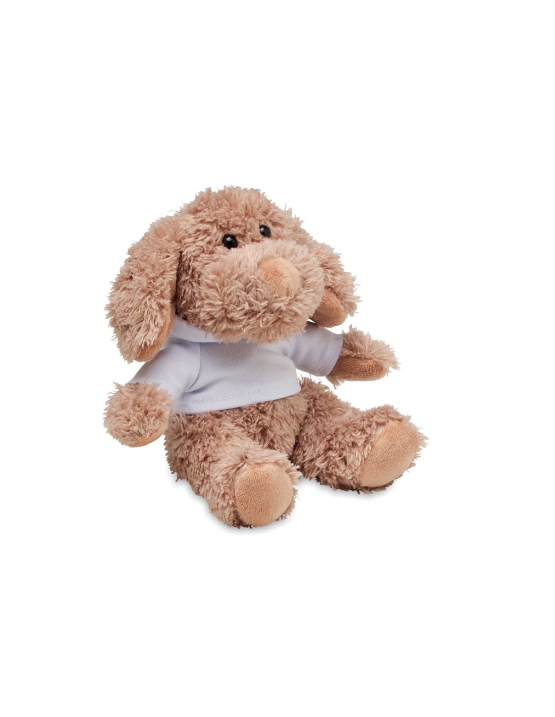 Cane pelouche con t-shirt con cappuccio adatta anche per la stampa sublimatica - Colore T-shirt bianca - F.to 10x11x12