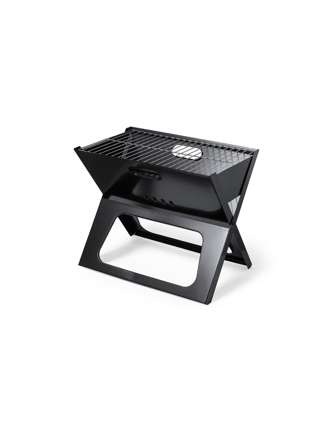Barbecue pieghevole in metallo con finitura nera - Con comode maniglie e griglia, facile da piegare e di dimensioni compatte - Confezione in scatola - Colore Nero -F.to 44x28,5x36,7