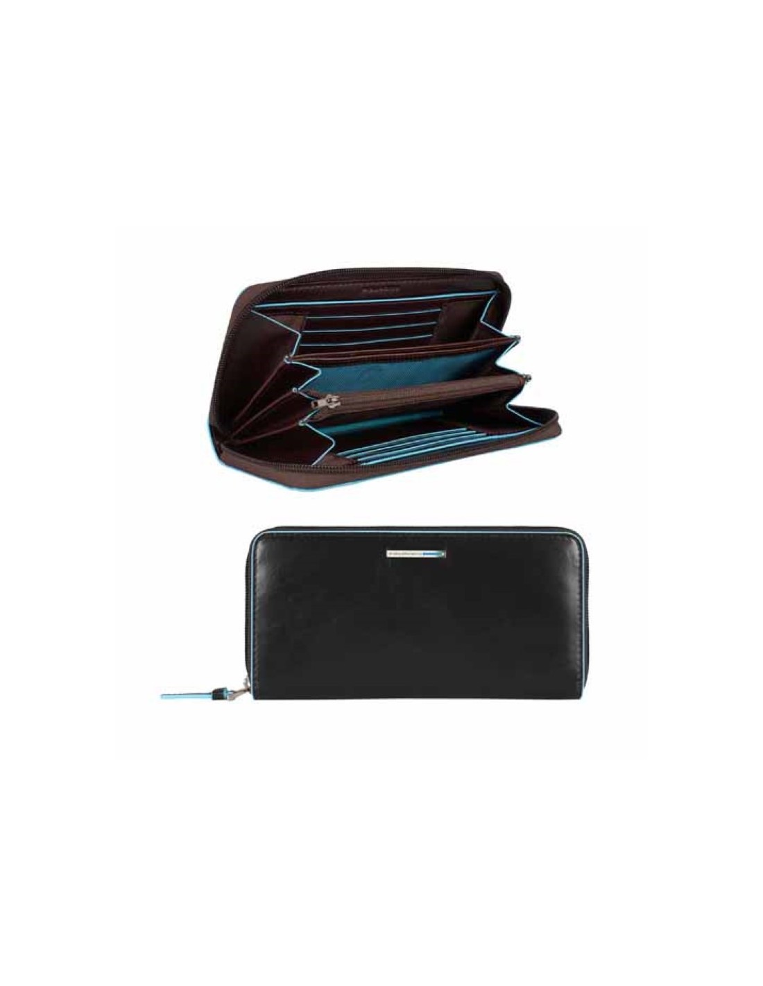 PD3229B2 - Piquadro linea BLUE SQUARE - Portafoglio donna in pelle chiuso da zip, con porta monete e porta carte di credito - Colori: Rosso, Mogano, Nero - F.to 18x9,5x2,5