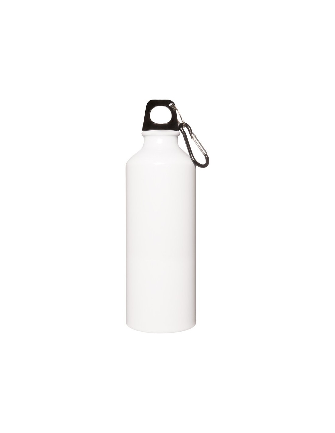 Borraccia da 500 ML in alluminio con moschettone e con chiusura a vite - Confezione singola in scatola di cartoncino - F.to Β 6,5x21 cm Colori: Blu, Nero, Rosso, Silver, Bianco