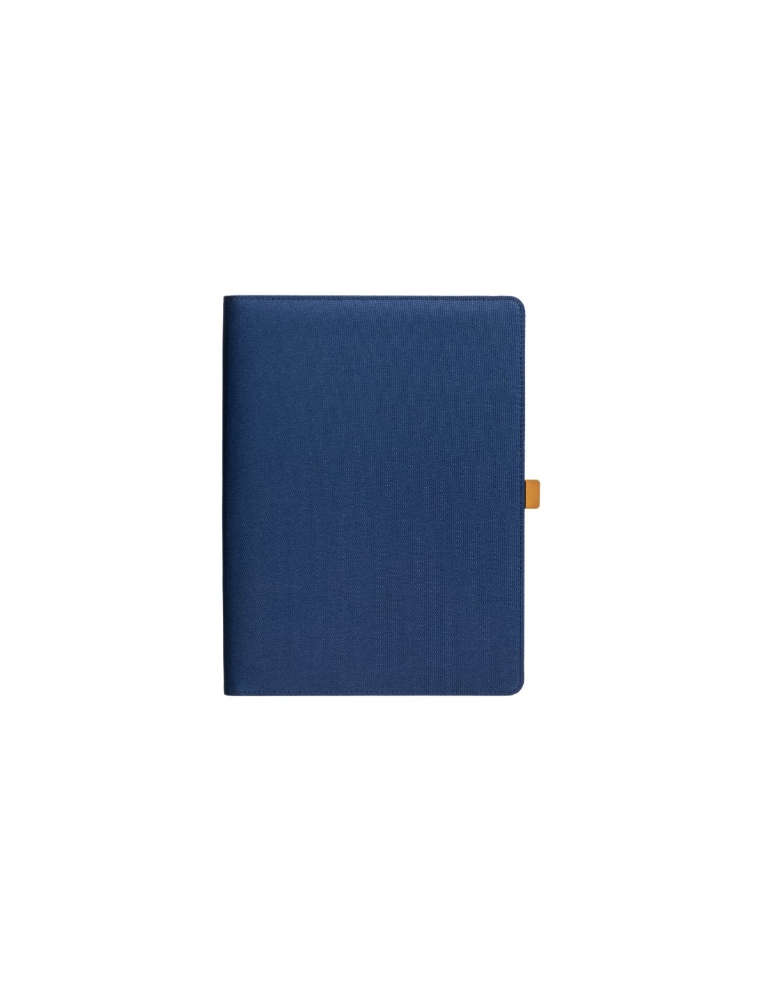 Cartella portablocco A4 in RPET - Con gancio di chiusura in metallo, scomparti laterali porta documenti e porta biglietti da visita, anello porta penna elastico interno (penna non inclusa), blocco da 20 fogli a righe incluso - Colori: Blu, Nero - F.to cm 31x23,5x1,5