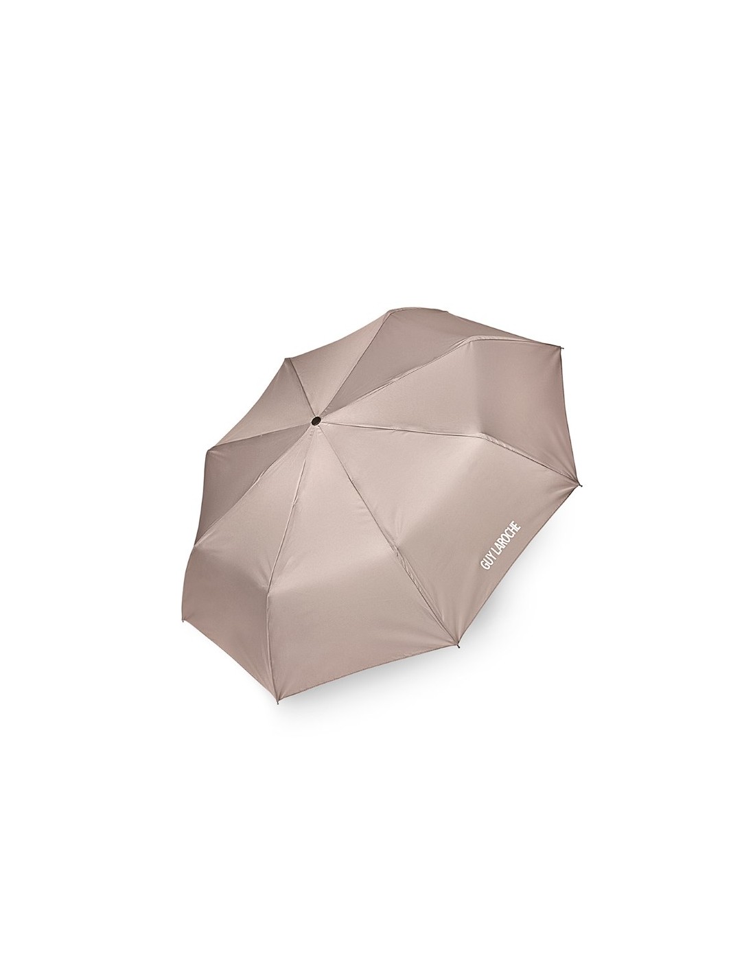 Ombrello Guy Laroche 3 sezioni con meccanismo apertura e chiusura automatica - logo stampato in un pannello- confezionato singolarmente nel suo sacchetto e poi in polybag trasparente - Made in Europe - Colore: Sabbia - F.to Β 94 x lunghezza aperto 58 cm. e chiuso 28 cm.