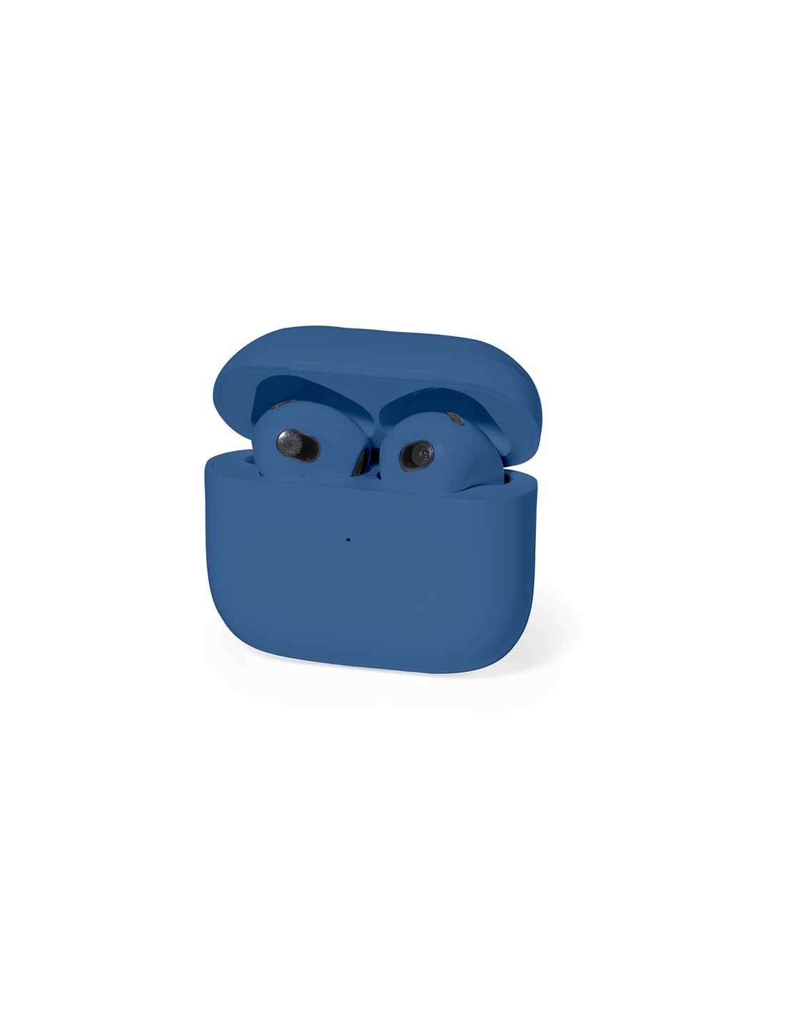 Auricolari con connessione Bluetooth© 5.3 e funzione vivavoce - Design ergonomico, con pulsante di controllo a sfioramento integrato nell'auricolare e base di ricarica abbinata - Batteria incorporata da 300 mAh - Confezione singola in scatola di cartone avana - Colori: Bianco, Blu, Nero - F.to cm 5,4x4,6x2,1