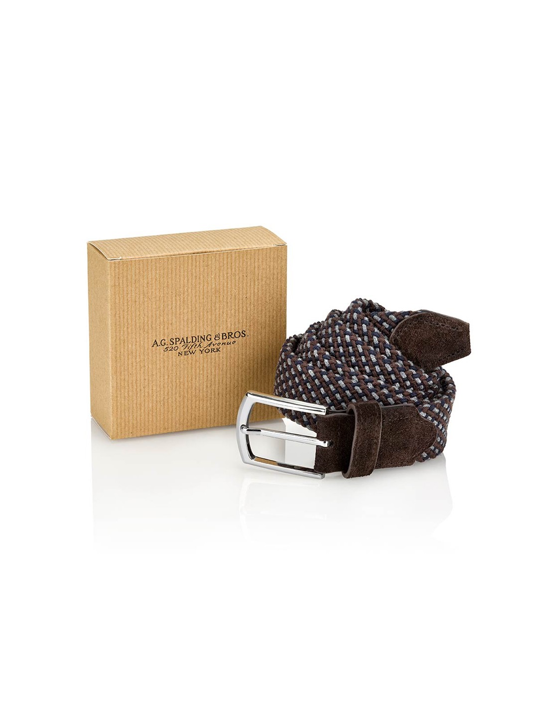 Cintura Uomo A.G. Spalding & Bros. - Con fusto in maglia elastica three tone e finiture scamosciate, fibbia ad ardiglione in metallo lucido, confezionata in scatola regalo - Taglia unica: 110/120 cm /3,5h