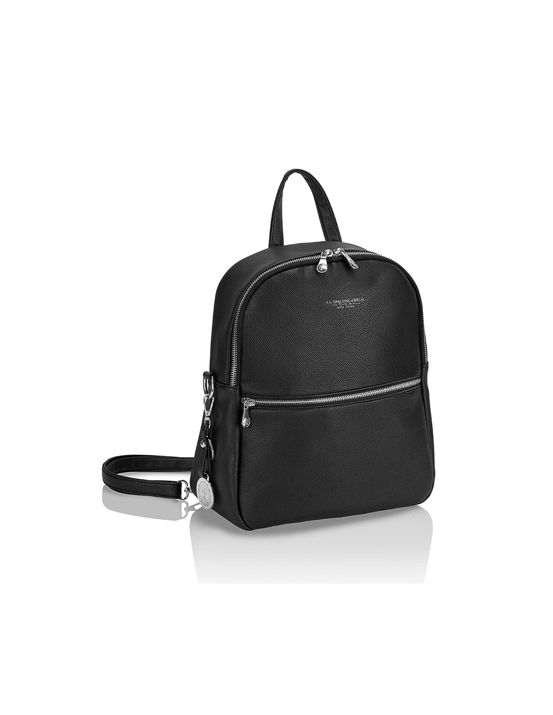 Zaino Donna A.G. Spalding & Bros. - In PVC realizzato con 1 tasca frontale e portachiavi CHARMS con pendente logo, zip e cursori in contrasto in metallo cromato, doppi spallacci removibili - Colore: Nero - F.to cm 27x13x30h