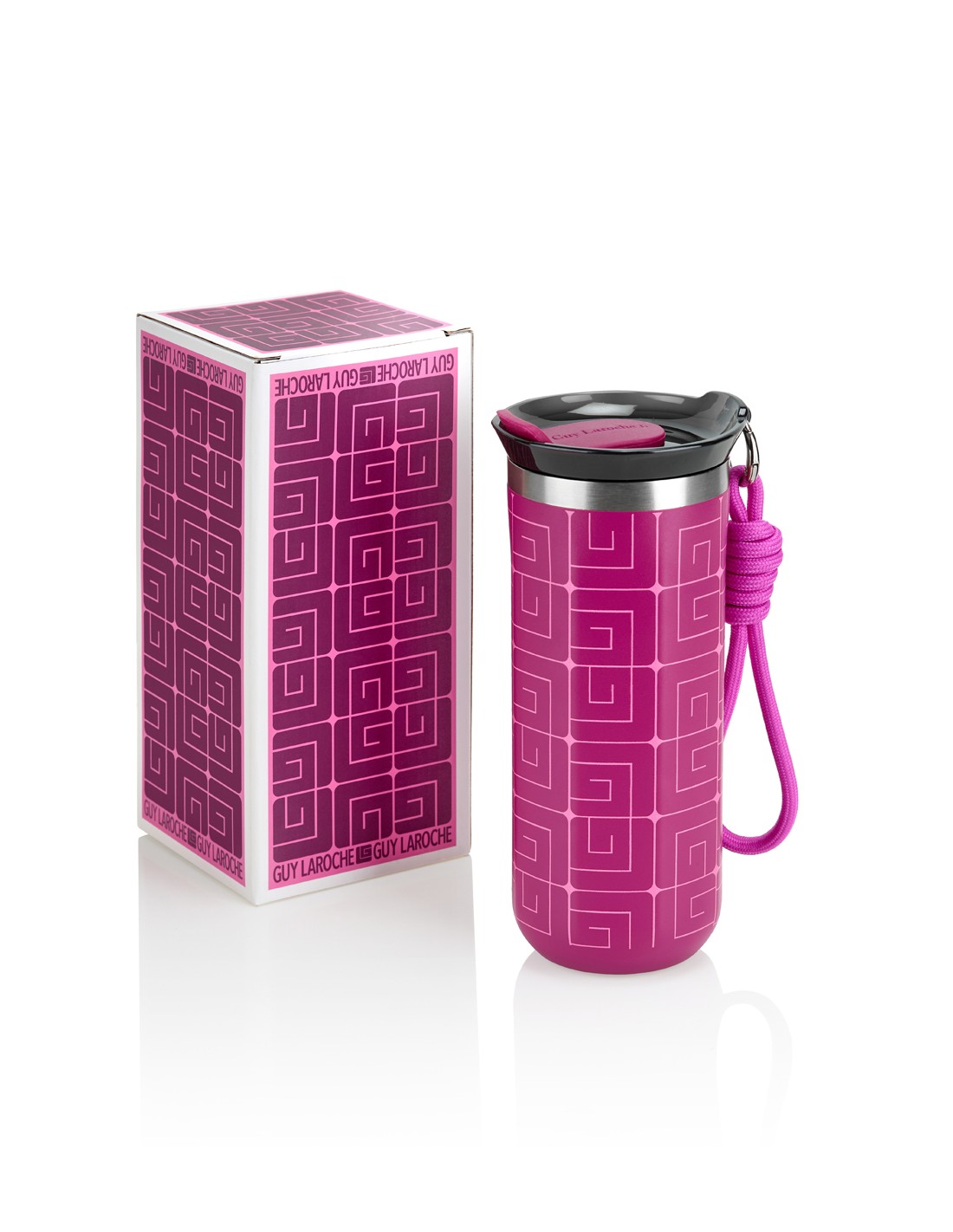 Tazza termica Guy Laroche a doppia parete - Coperchio con tappo in silicone e corda da polso - Realizzata totalmente in acciaio - Capacit…: 500 ml - Materiale interno: 304SS - Materiale esterno: 201SS - Confezionata in scatola regalo - Colori: Blu, Rosso
