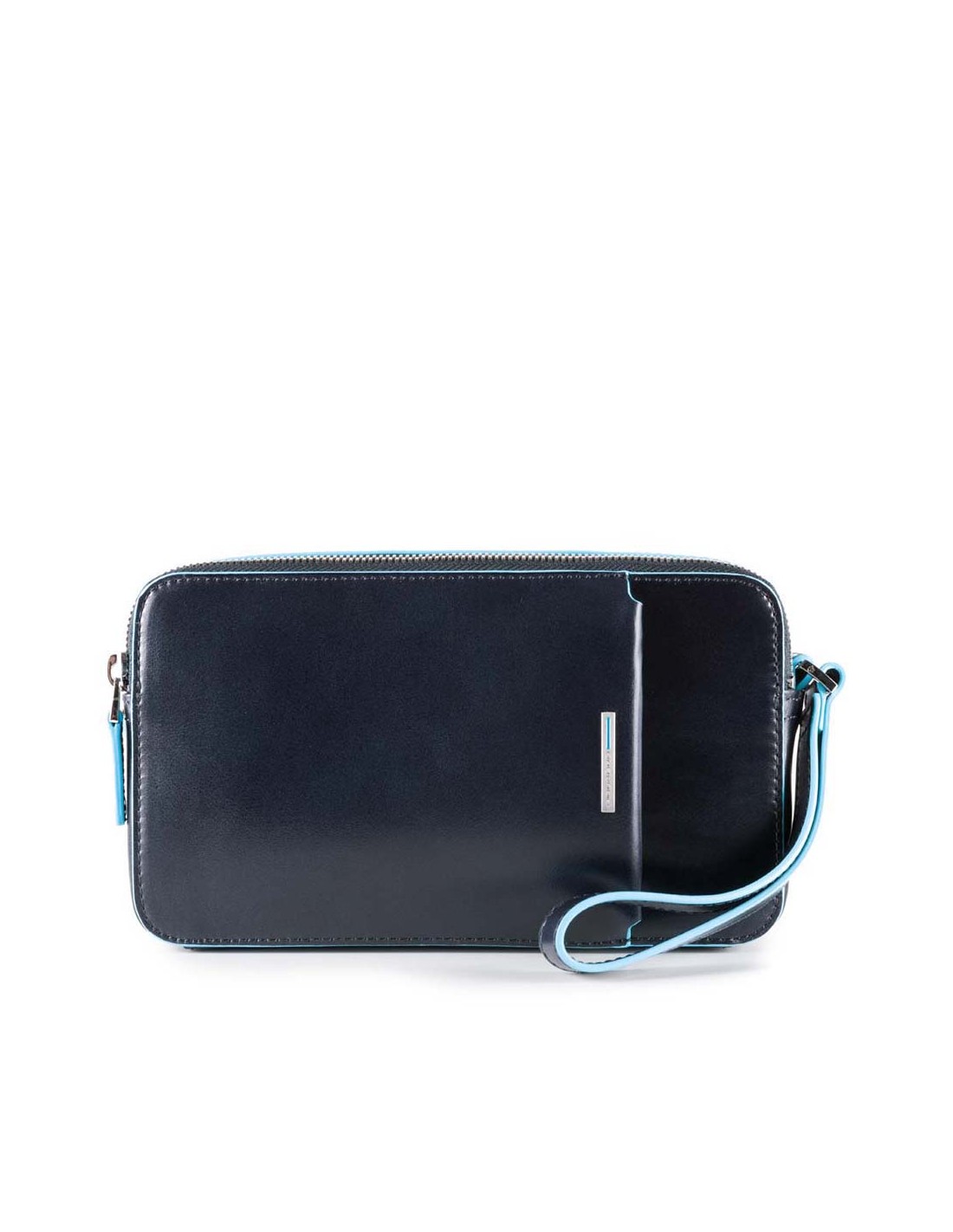 AC4221B2 - Piquadro Linea Blue Square - Pochette uomo a due scomparti in pelle con polsiera rimovibile - Colori: Blu, Mogano, Nero - F.to cm 21x12x5