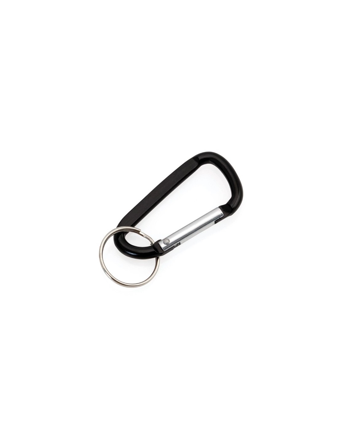 Moschettone in alluminio con anello portachiavi e corpo a finitura liscia - Colori: Giallo, Nero, Rosso, Blu - F.to cm 3x6x0,5