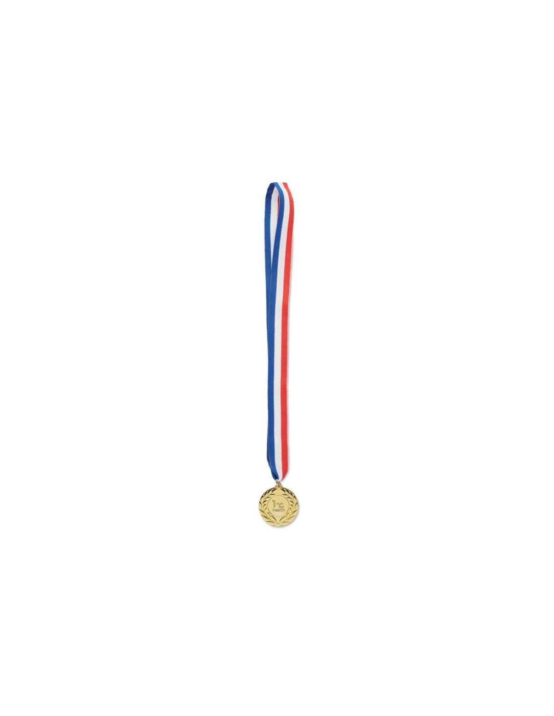Medaglia in ferro con cinturino in poliestere colore Blu/Bianco/Rosso - Colori: Argento, Oro, Bronzo - F.to cm Β 5 x 0,2