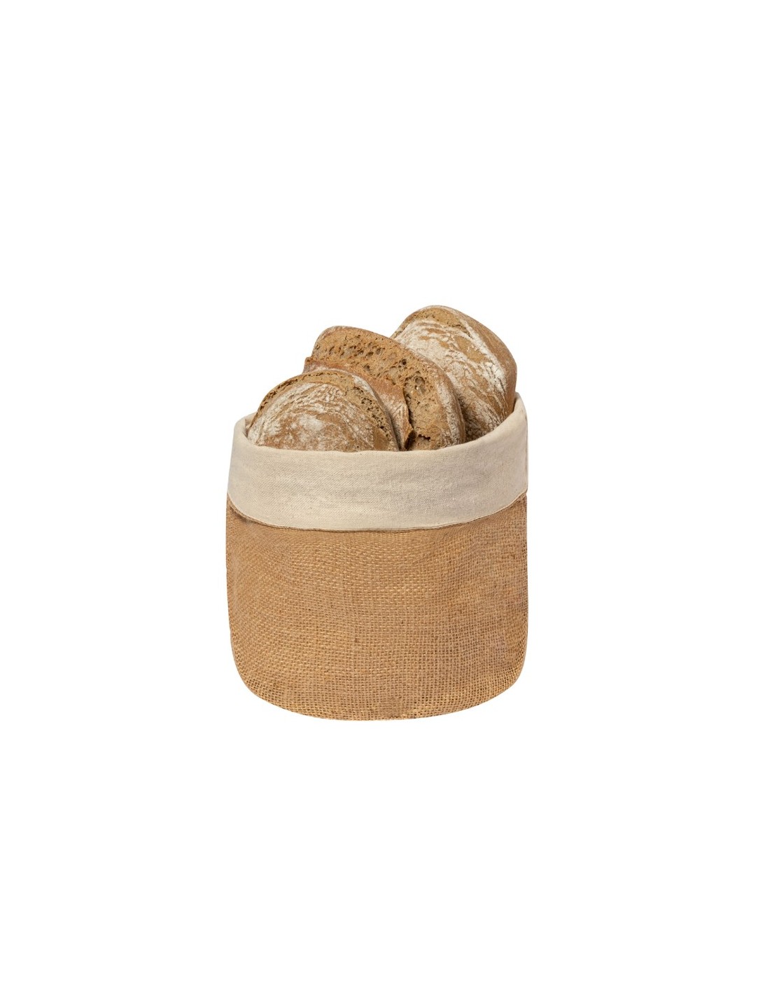 Portapane 100% cotone all'interno e juta all'esterno con design rotondo, confezionato in un sacchetto individuale riciclato - F.to cm  15 x 20