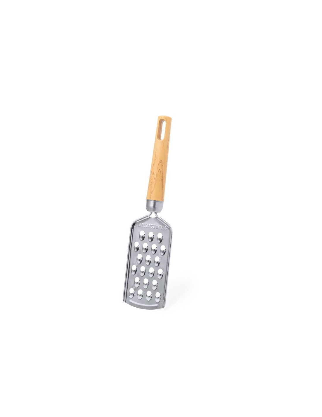 Grattugia manuale in acciaio inox con manico ergonomico in PP e un'apertura per appenderla comodamente - Confezionata in un sacchetto di carta riciclata - F.to cm 5,5x24,5x2