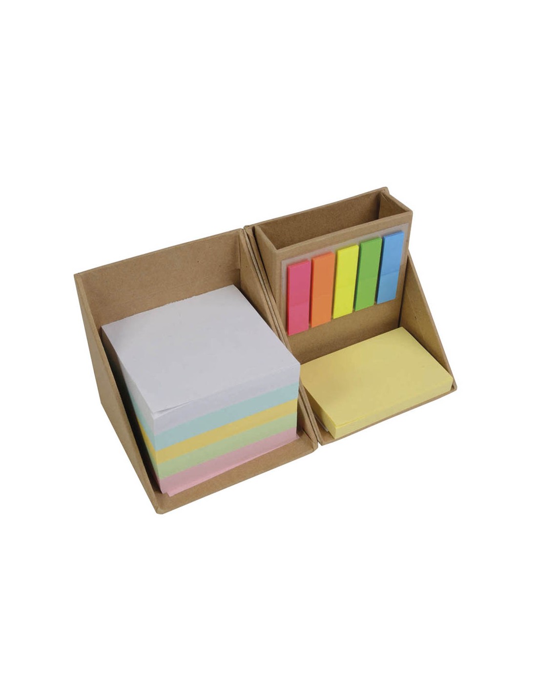 Set meno a forma di cubo in cartoncino con all'interno porta penne e memo stick colorati in diverse dimensioni - F.to cm 9x9x9