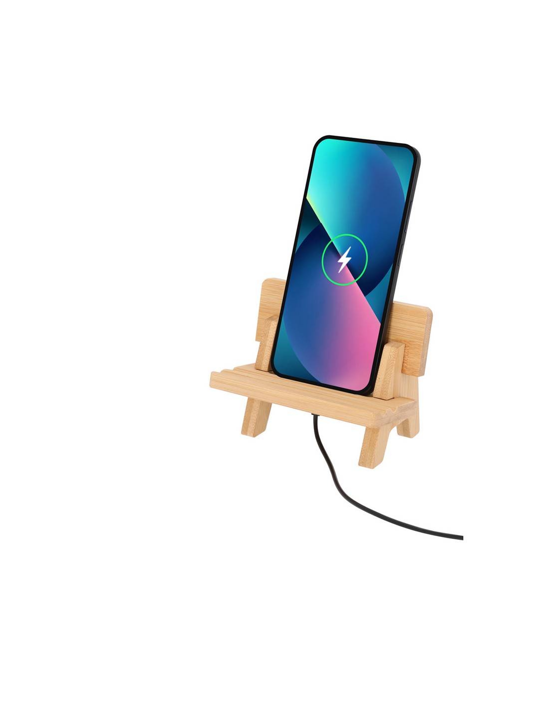 Supporto per smartphone in bamb a forma di panchina - Con parti rimovibili che consentono 3 diverse posizioni del dispositivo - Include una fessura per il cavo di ricarica, che consente di posizionare il dispositivo nel supporto durante la ricarica - Confezionato singolarmente in una scatola in cartone avana - F.to cm 12,4x9,9x9,3