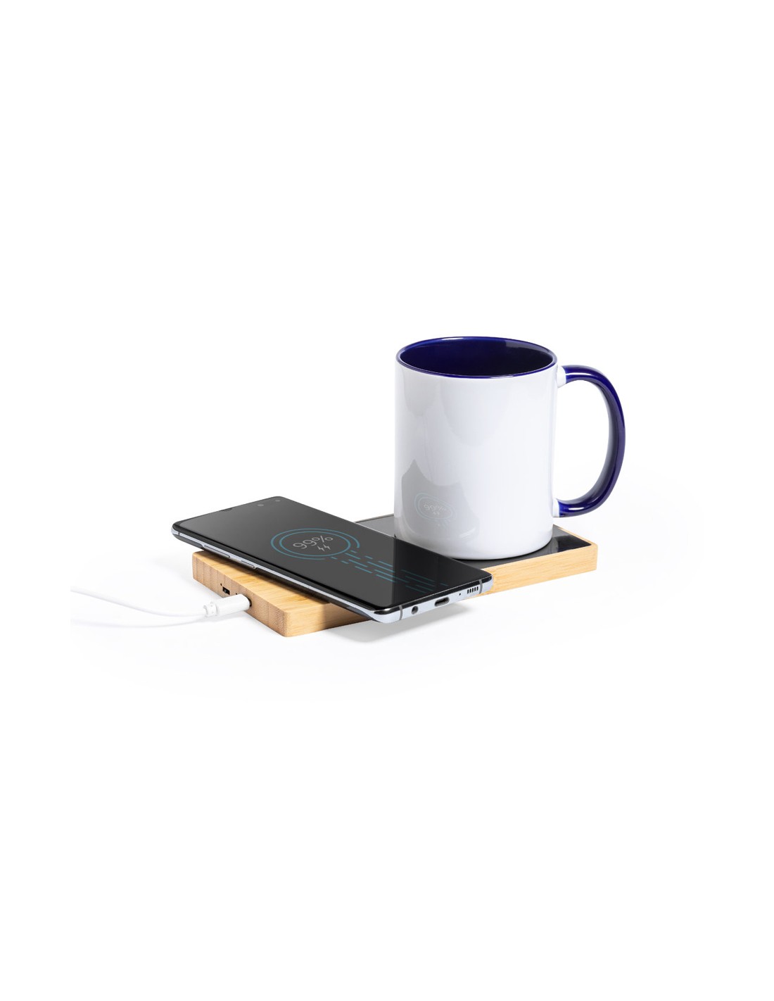 Scaldatazze in bamb con caricatore wireless integrato da 10W - con un'ampia superficie che consente di riscaldare la tazza e caricare il dispositivo contemporaneamente - Compatibile con i dispositivi dotati di tecnologia di ricarica wireless Qi - Include un cavo di ricarica di tipo C da 1 m e una base antiscivolo - Confezionata singolarmente in una scatola in cartone - Prodotto secondo gli standard RoHS e in conformit ai seguenti requisiti di sicurezza: sistema di protezione dal surriscaldamento, sistema di protezione da sovraccarico, sistema di interblocco in caso di cortocircuito, sistema di trasferimento del carico costante in base alla capacit del dispositivo di destinazione - F.to cm 18,2x 1,3x 9,7
