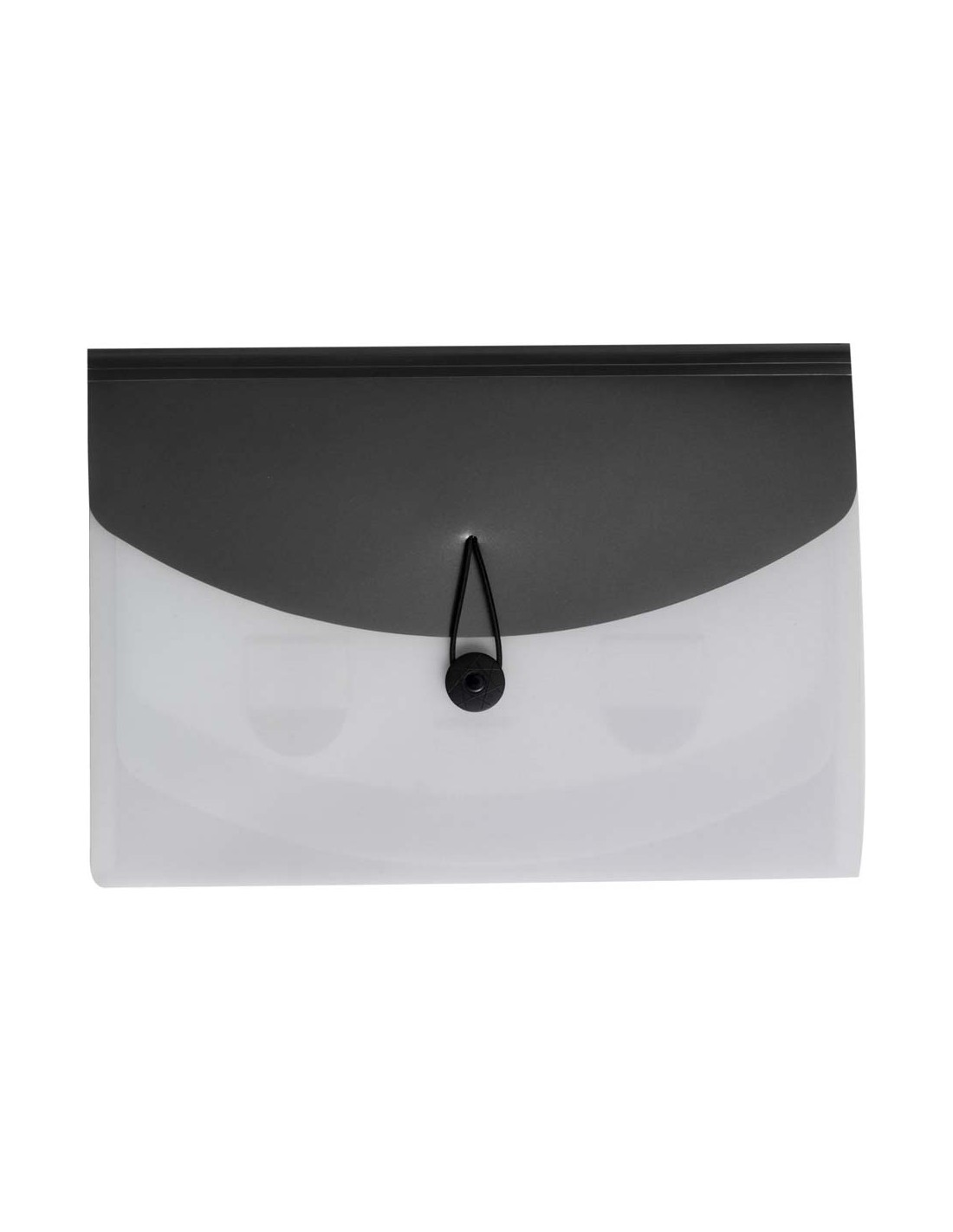 Cartellina portadocumenti A4 in PP con 4 scomparti per organizzare i documenti, chiusura ad elastico - Colori: Celeste, Nero - F.to cm 32x22x0,2