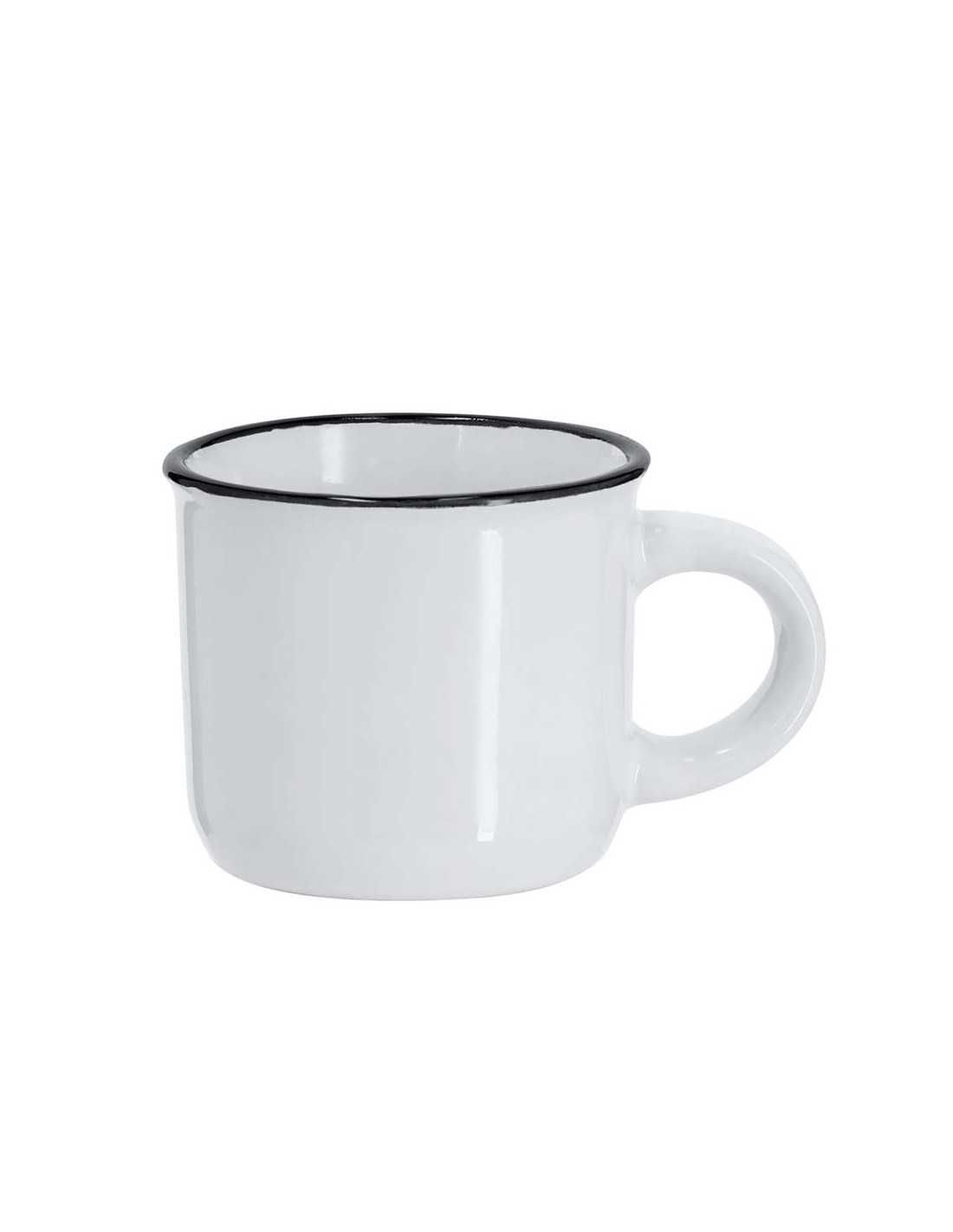 Tazza in ceramica da 85ml - design vintage bicolore, con anello nero sul bordo e corpo bianco - Progettata specificamente per marcatura in sublimazione - Colore: Bianco -F.to cm Β 6,2 x 5,4