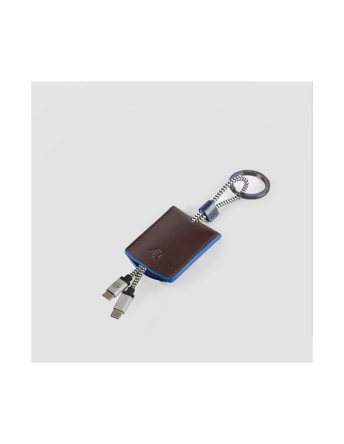 AC6571B2 - Piquadro Linea TECH ACCESSORIES - Portachiavi in pelle - con cavo USB Type-C e lightning - Colori: Blu, Mogano - F.to cm 5x6x1