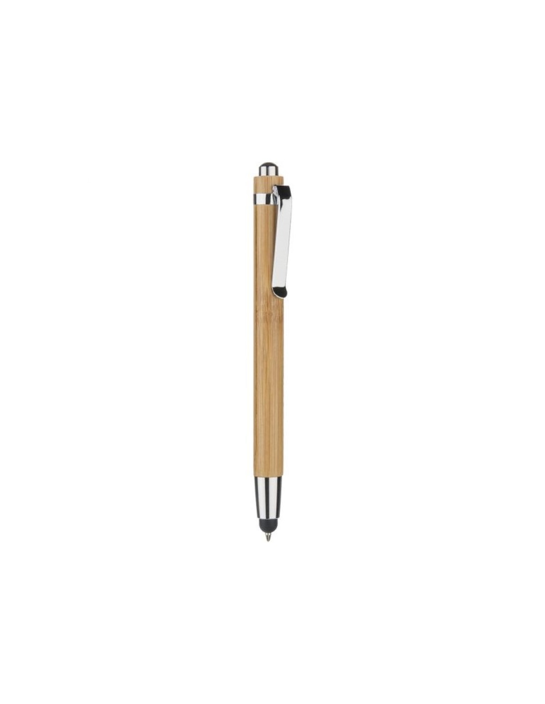 Penna a sfera in bamboo con touch screen , clip in metallo, pulsante e puntale in plastica - Meccanismo a scatto - Refill nero