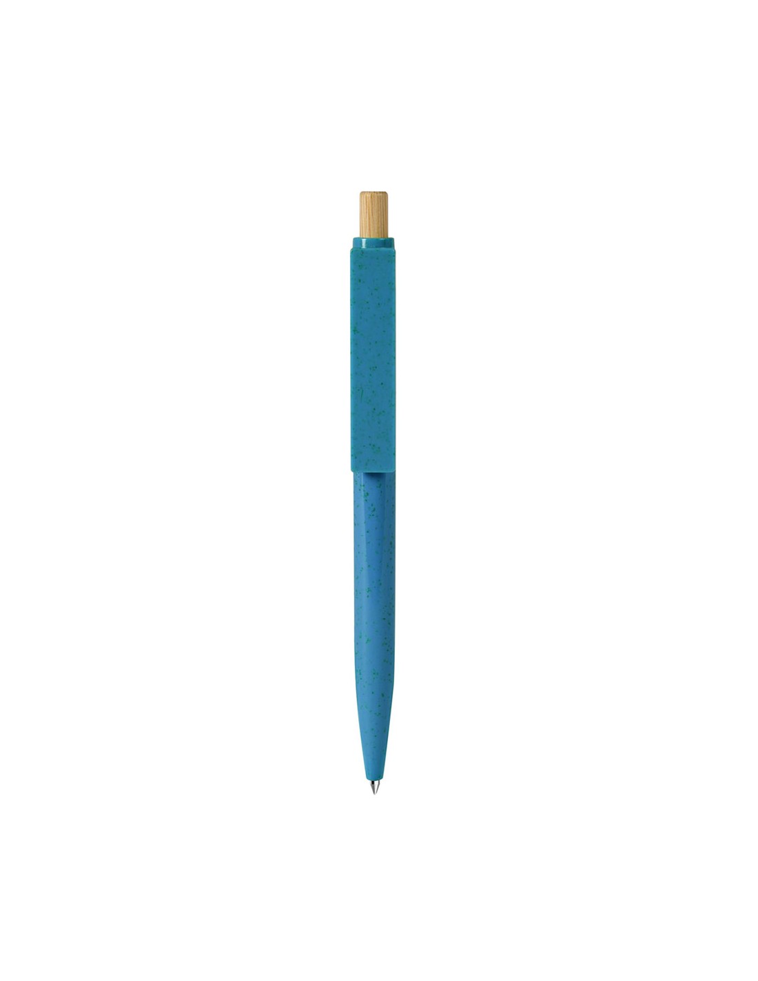 Penna a sfera in paglia di grano e ABS - Con pulsante in bamb - Meccanismo a scatto - Refill Blu - Colori: Giallo, Arancio, Azzurro, Verde, Rosso