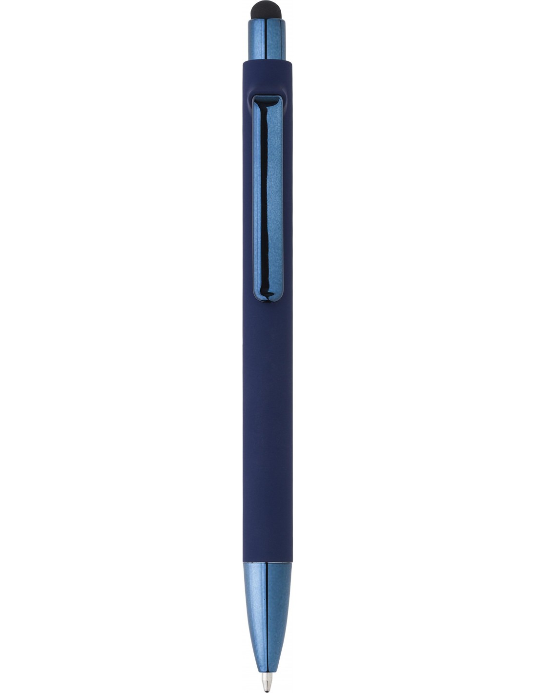 Penna a sfera in ABS con gommino per touch screen - Finitura opaca, dettagli lucidi in vernice UV - Meccanismo a scatto - Refill Blu - Colori: Verde, Blu, Marrone, Viola