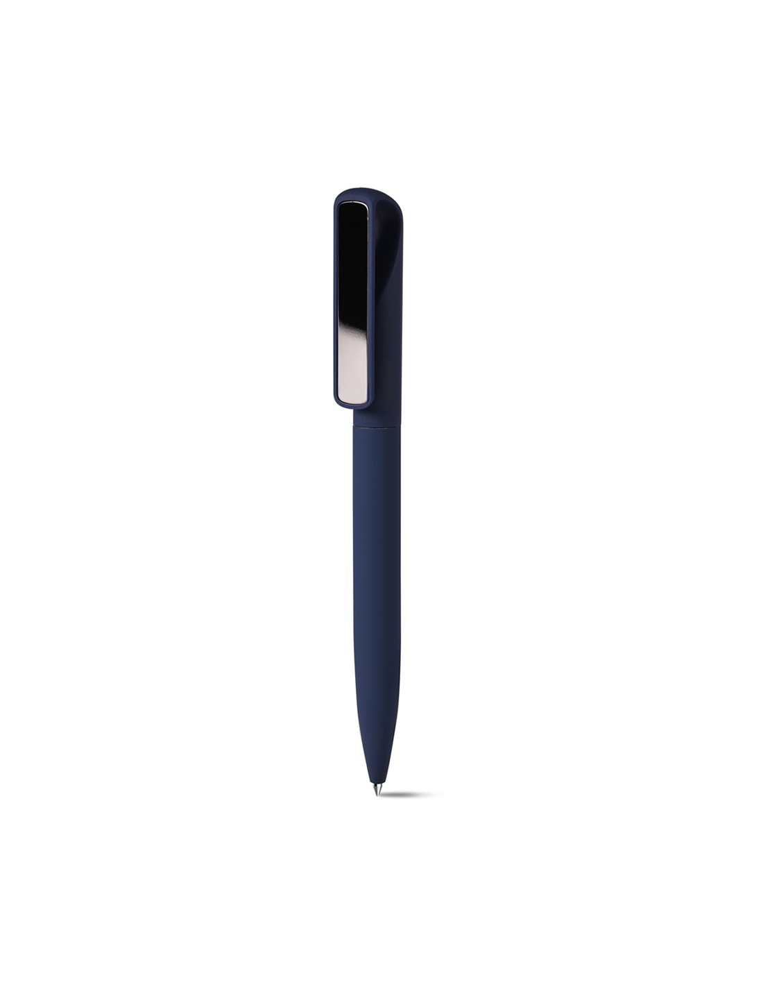 Penna a sfera con fusto in alluminio riciclato e plastica, rivestito in materiale gommato al tatto - Clip con inserto in metallo brunito - Meccanismo a rotazione - Refill Nero - Colori: Blu, Grigio, Nero