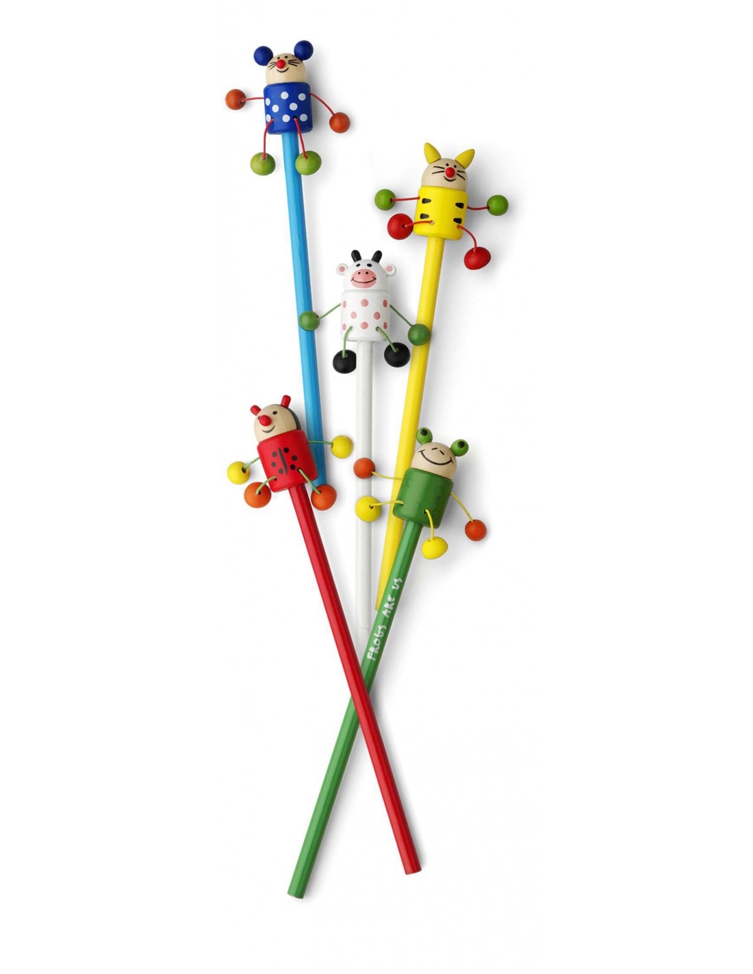Matita in legno - Soggetti animali : Tigre, Coccinella, Topo, Rana, Mucca - F.to cm 20,3