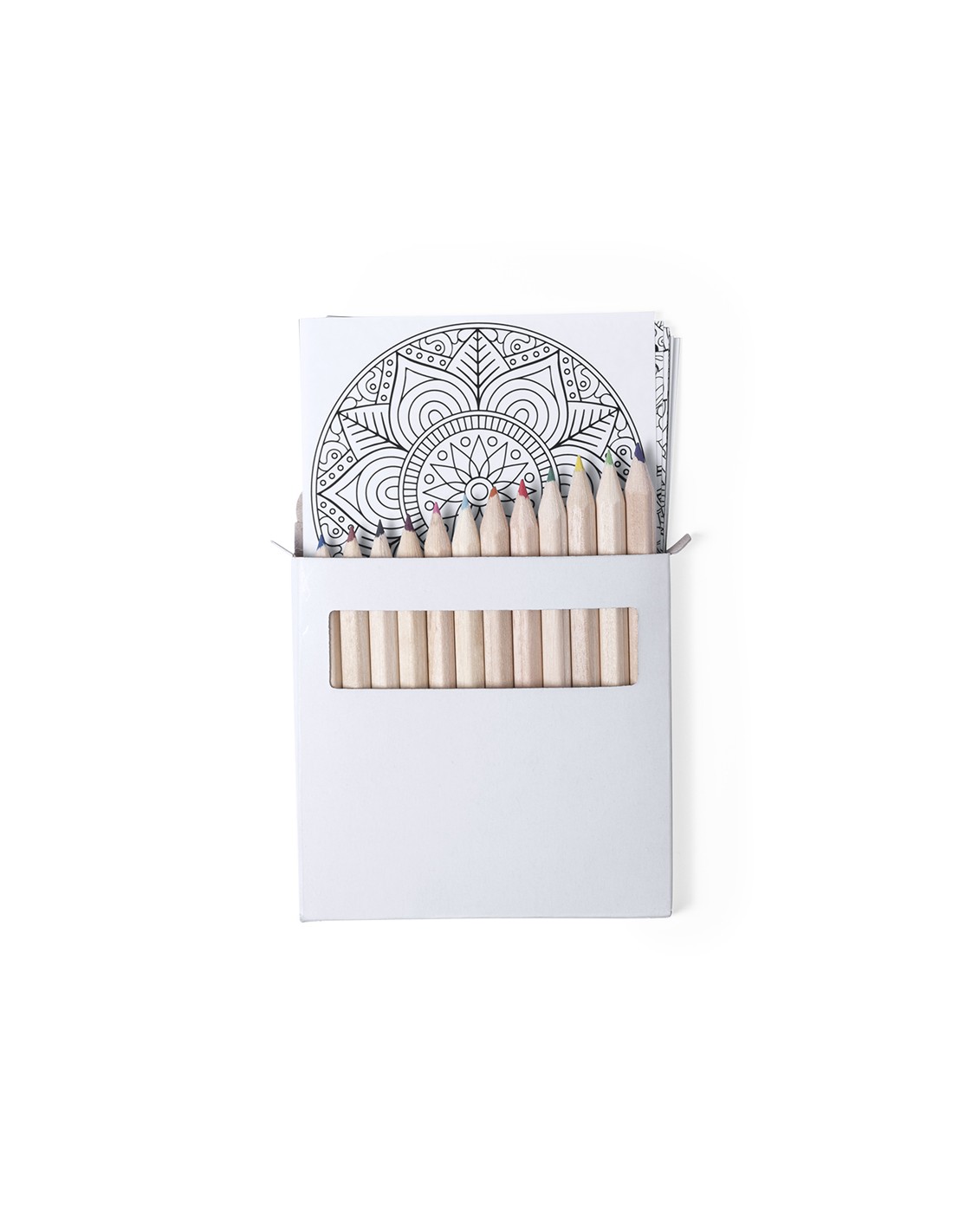 Set di matite e fogli con disegni mandala per colorare - Include 12 matite esagonali e 12 fogli da colorare con disegni diversi - In scatola di cartone con finestra - F.to cm 9x9x1